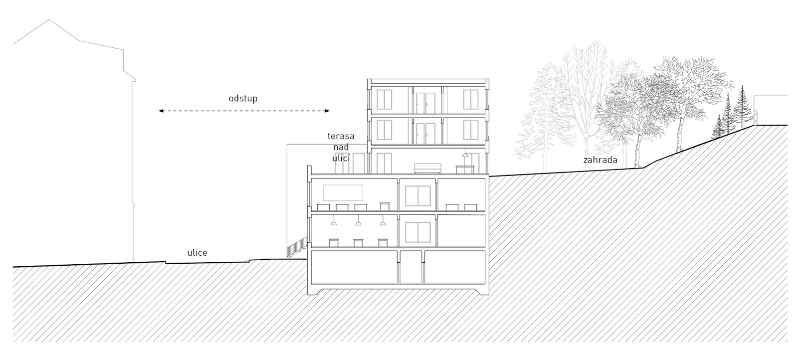 tím dosáhnout především udržení si odstupu od činžovního domu naproti přes